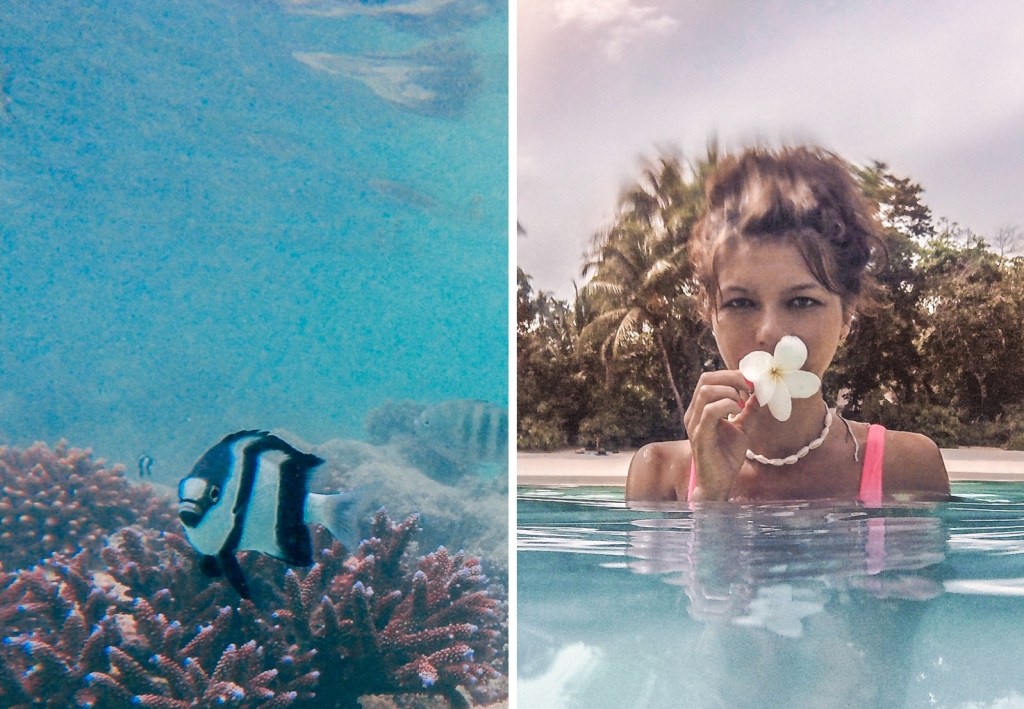 The owner of our hotel told us about this amazing beach called Beauvallon with the most wonderful exotic marine life in Mahé, or even the Seychelles. Here is an amazing reef with beautiful tropical fish, only a few meters from the shore. The beach belongs to a resort, but you don’t need to be a guest to have access to the beach. The resort allows a certain number of people to visit the beach. You just have to contact them to say you’ll visit. They even allowed us to fly drone.