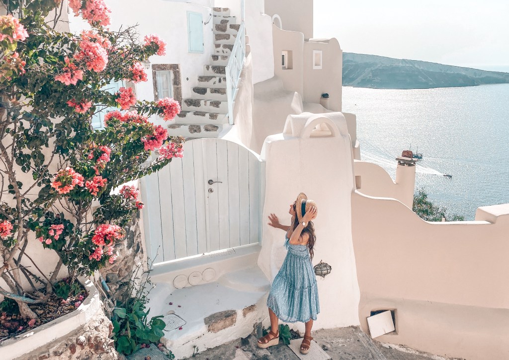 I’m pretty sure that almost everybody knows and wants to visit at least one time the magical island of Santorini. I think Santorini is one of the most romantic island in the world. Cute white houses with blue doors, the mysterious caldera, crystal clear blue water, local tavernas which serve fresh delicious greek food and of course the famous hypnotic sunsets that you experience only in Santorini. After two years I came back to Santorini with my boyfriend, as he wanted to see the island himself after all the stories I told him about how magical this place is. Being such a famous place get ready for the crowds. It’s the most visited place in Greece, but after lunch many tourists prefer to stay in their hotel room because the sun hits really hard at midday, so if you want to wonder along the streets of Oia without crowds, that is the best time.