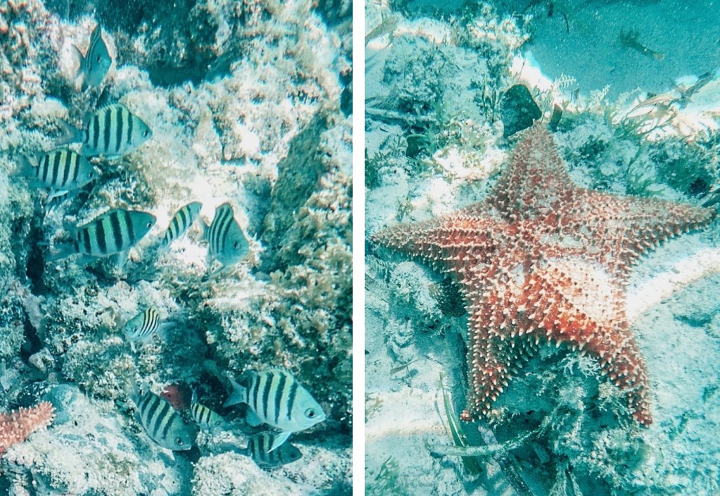 We started to explore the place and walking along the beach is a true pleasure, a massage for the feet and therapy for the soul. The sun is strong and the only thing you want is to jump into the water to cool off. We put our stuff under a palm and we started to explore the water and WOW! This was one of the best spots for snorkelling. Only a few meters from the shore we saw a plenty of parrot fish, trumpet fish, colorful starfishes and shells.