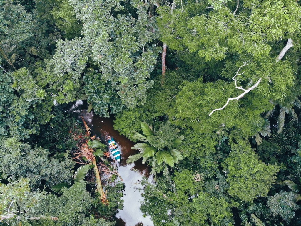 After a delicious breakfast with an impressive view to the rainforest, surrounded by many tropical birds, we are more than ready to get lost into the the lush wilderness by a boat ride through the small canals for wildlife observation.
