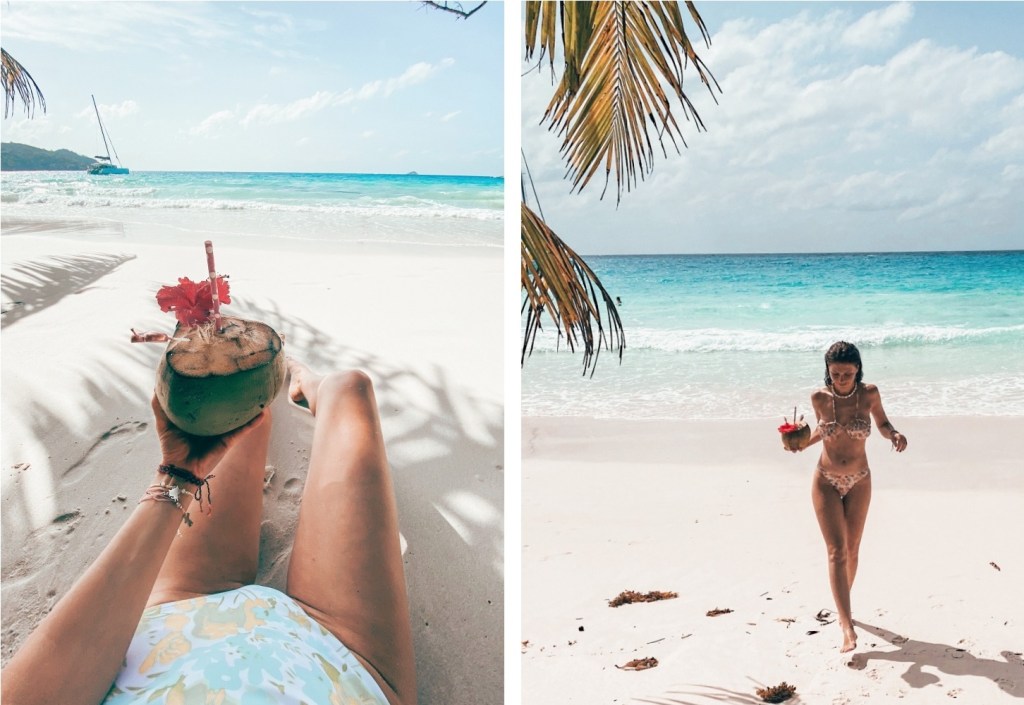 I lost the count on how many coconut water I drank this time in the Seychelles. Each time we came at the beach we bought at least 2 coconuts and why not if it is super delicious and let’s be serious, you don´t have this privilege in the city. If you wonder where you can buy one, you’ll see plenty of guys walking at the beach, selling fresh coconut and will prepare it right in front of you.