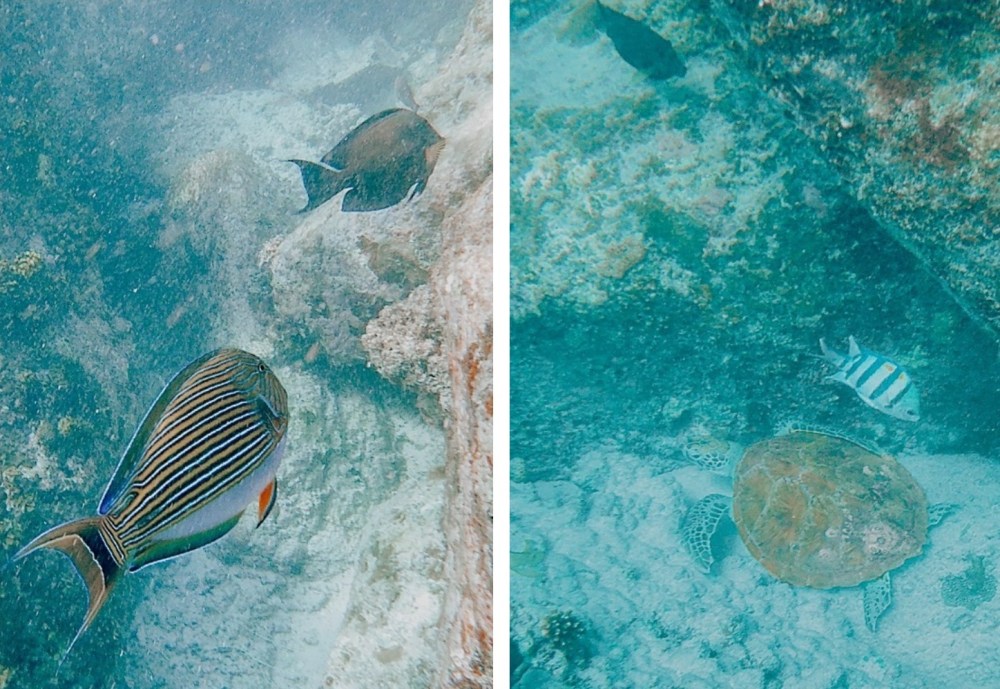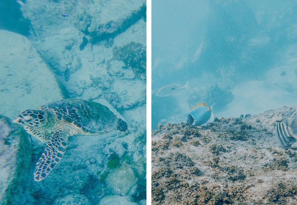 The water clarity is crazy and we spent a whole afternoon taking photos, sipping coconut water and swimming in the shallows. Not too far away from the shore is a beautiful coral reef and plenty of fish. We saw so many turtles in the water as well as sting rays. The beach is secluded and not very popular, so if you want to kayak, you have to bring one, because there is no one renting it. A kayak experience here is amazing, so if you can, try it!