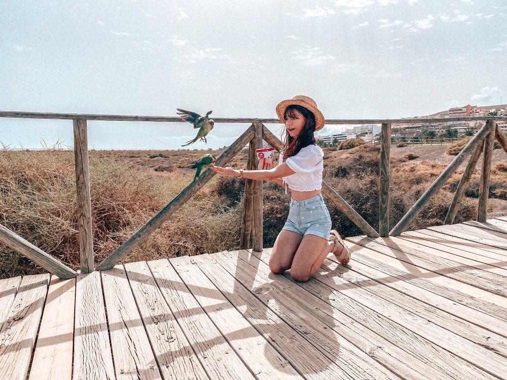 I recommend you to visit Cofete beach for so many reasons. One of them is that at the entry at the beach you are greeted by cute squeals and tropical birds. I mean, how many times you get to see that! Super cool! The birds probably escaped from some ZOO and now they live there.
