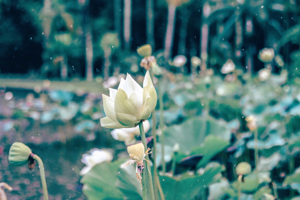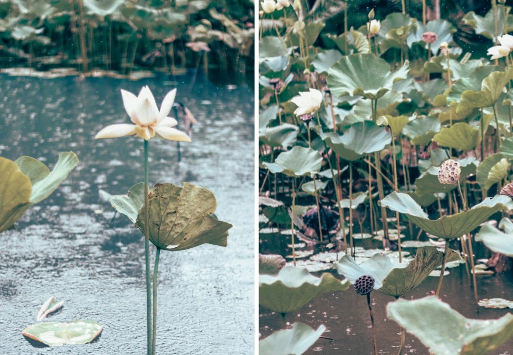 Very close to the giant water lilies is the Lotus Pond, where you can see the gorgeous Indian Lotus Flower. There was a cool breeze coming off the lake and the scent of tropical flowers and rain was something I will never forget. It was raining like crazy that day, but we still could enjoy the beauty of the place and took tons of photos. On one of the things that you can see only if it rains it is the water that pours in the lotus leaves and when it fills with enough water the water falls creating a very beautiful effect. When it is not raining people try this with drinking water. Very impressive!
