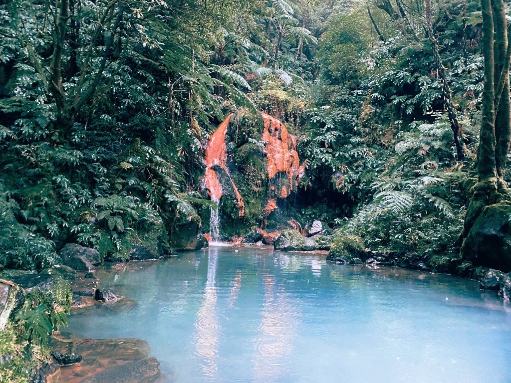 It’s made of several pools that have been created out of the river that runs through the town. The water is full of orange deposits of iron. So if you bathe here, prepare to come out of the water looking a bit.. orange. It’s a very good place if you are looking to relax. If you have time after the hot springs you can also visit the Caldeiras Vulcânicas nature preserve in Furnas to see more fumaroles.
