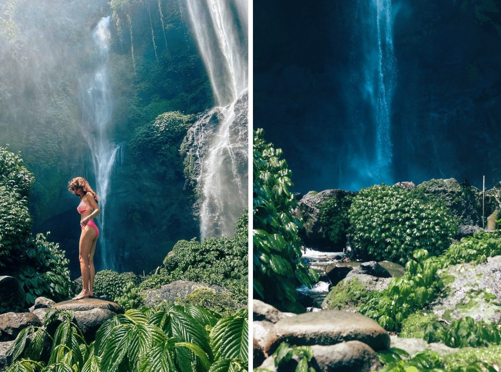 At Sekumpul, there are multiple waterfalls that you can buy tickets for and the prices vary with the amount of waterfalls you want to visit. We wanted to visit only two of them, which included NungNung Waterfall as well as Sekumpul. When you visit this waterfall you have a couple of options, you can chose to view it from the platform from above, or you can take one of the trekking options and go underneath the waterfall. I do recommend to go and see it from down, because the hike until the waterfall is absolutely stunning, the walk into the lush jungle is extraordinary, making the visit an unforgettable experience.