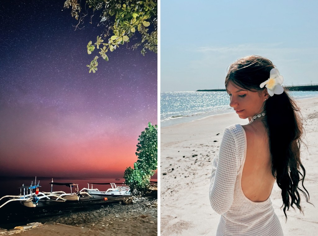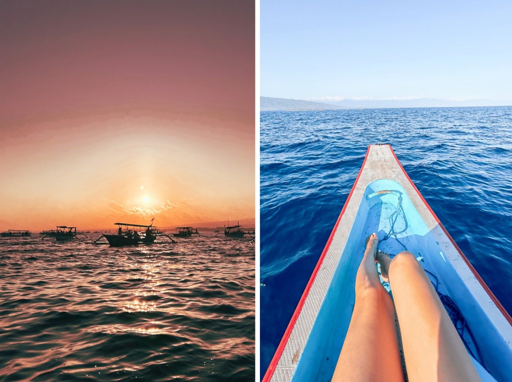I wanted to explore and do as much as I could during my stay in Bali and of course swimming with dolphins had been on my bucket list. So, we woke up at 3AM and started our way to Lovina beach, to see the dolphins. I was so excited, I couldn’t help but to picture myself strolling along the black sand beach as I was watching the breathtaking sunrise in hues of orange and pink. When I finally arrived, the calm atmosphere and untouched beauty made me feel instantly relaxed.